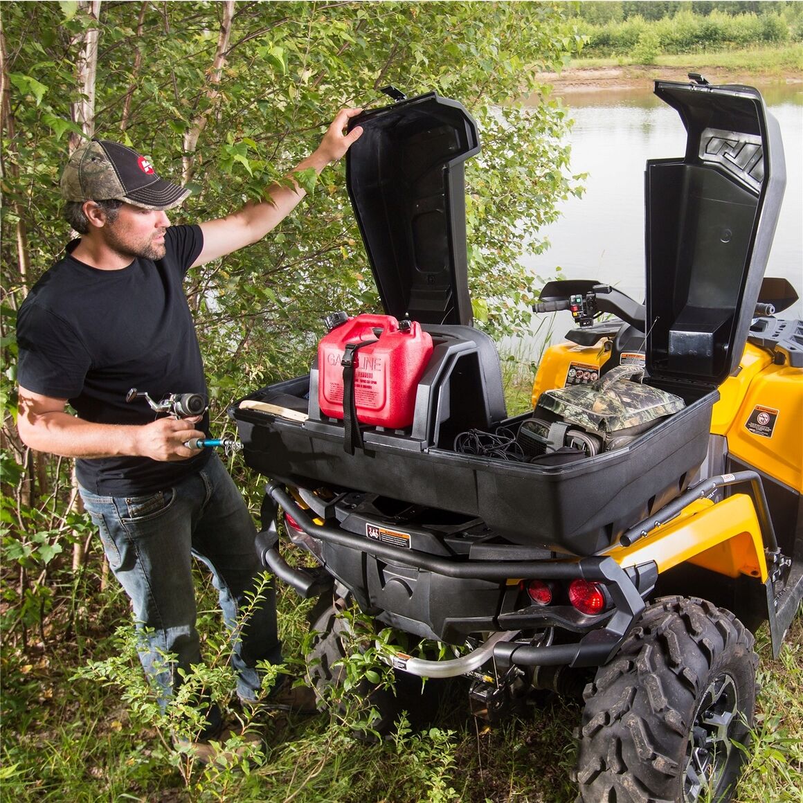 Luksuriøs bakmontert ATV-veske med sete for passasjer og varmehåndtak. Mer komfortabelt blir det ikke!