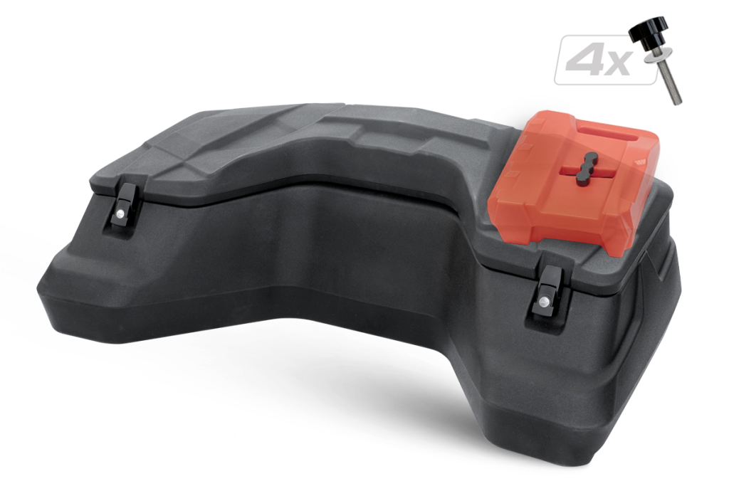 Pakkeboks Bak Linhai Landforce 550/650 er spesielt utviklet for å passe perfekt til lastestativet på din Linhai Landforce. Boksen har ferdige hull for monteringspunktene i lastestativet ditt, og det følger med hurtigfester som lar deg ta av og på boksen på et blunk.