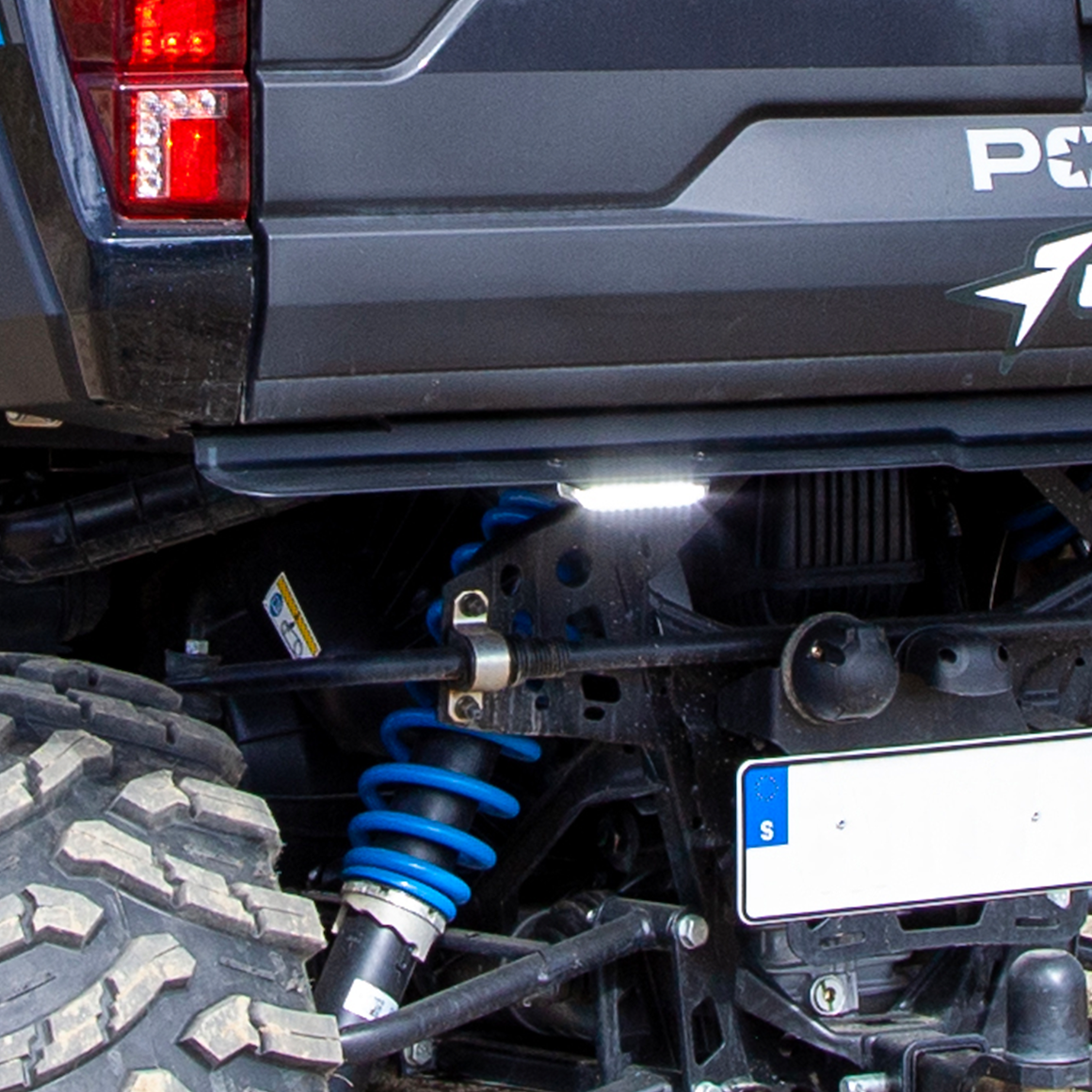 - En liten nyhet som imponerer stort! Ekstremt slank lampe som enkelt monteres med selvborende skruer i karosseriet på din ATV eller UTV. Gir kraftig lys til tross for sin beskjedne størrelse – perfekt som ryggelys!