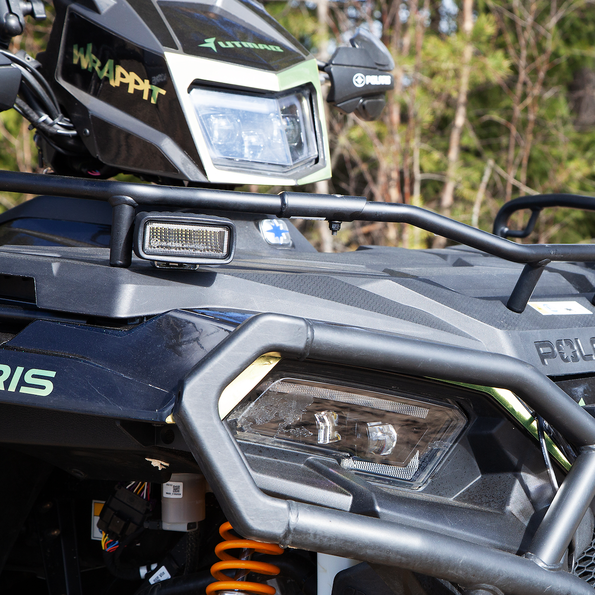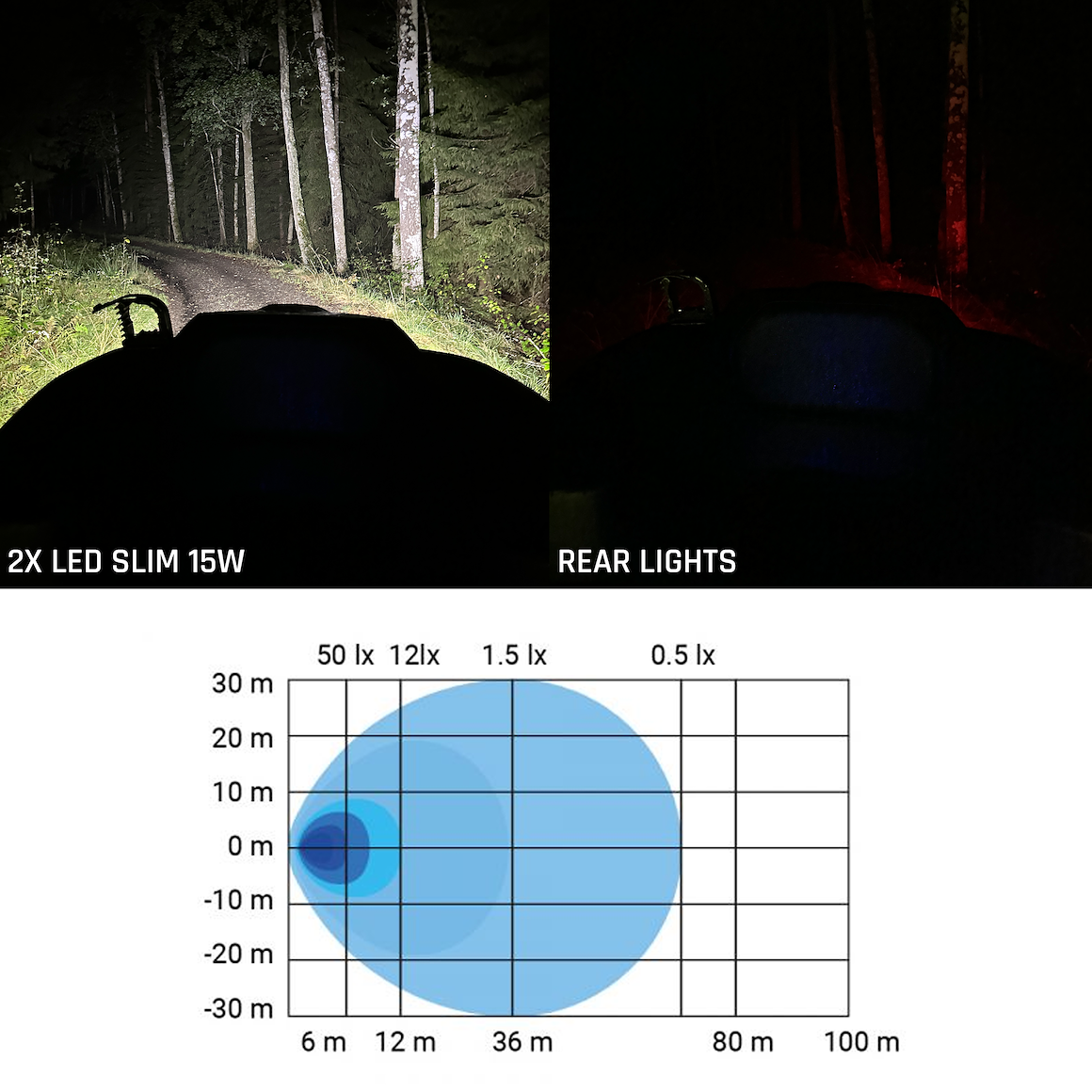 - En mindre versjon av vår populære Slim 30W-lampe. Anbefales montert bak på maskinen. Den kompakte størrelsen gjør at den enkelt kan skjules under lastracket bak eller på lignende sted. Kan brukes som enkeltlampe, men fungerer best i par, vinklet litt utover for et fullstendig ryggelys.