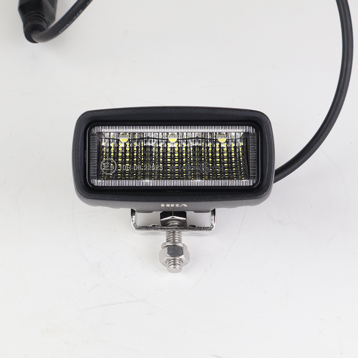 En kompakt rektangulær 15W-lampe som gir en bred og jevn lysfordeling. Lampen har et robust, pulverlakkert aluminiumshus som gjør den motstandsdyktig i krevende miljøer. Den leveres med en 30 cm lang kabel og DT-kontakt. E-godkjent som ryggelys i henhold til ECE R148.