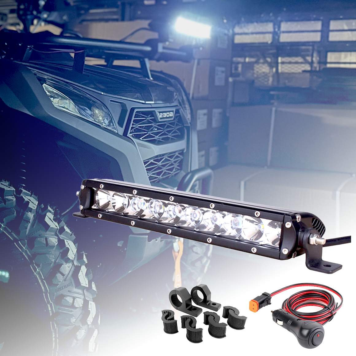 Lysbjelke med kabelsett. Veldig enkel tilkobling, koble bare kabelen til sigarettuttaket.