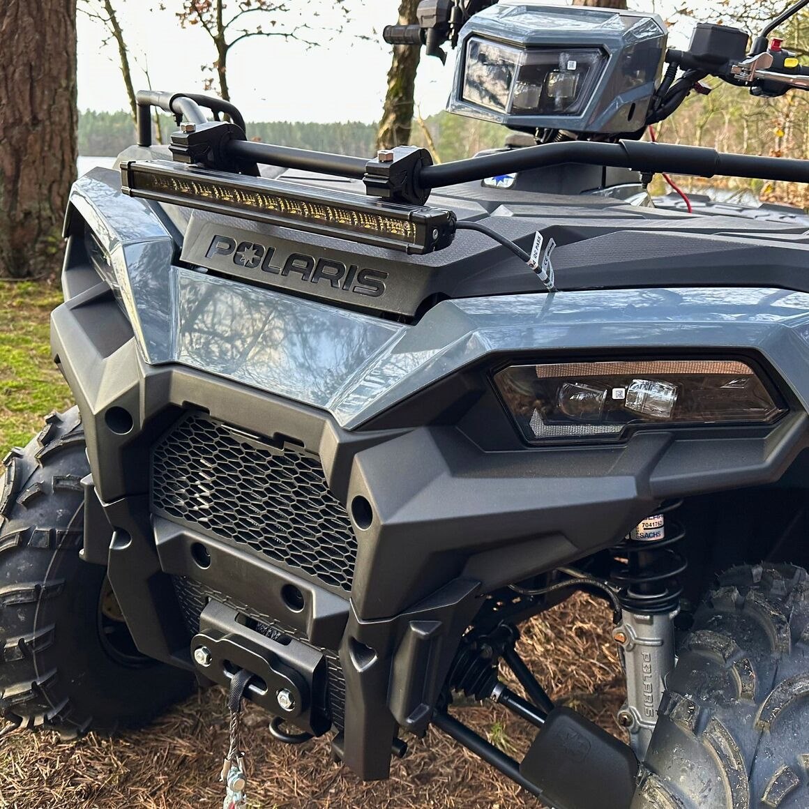 - En kraftig LED-bar i fleksibelt format, bred nok men smal nok til å monteres på eller under bagasjebrettet, på en ATV-kasse eller på støtfangeren foran. Svært fleksibel takket være både sideføtter og midtfester som sitter i en skinne på baksiden, noe som gjør innfestingen justerbar på mange måter.