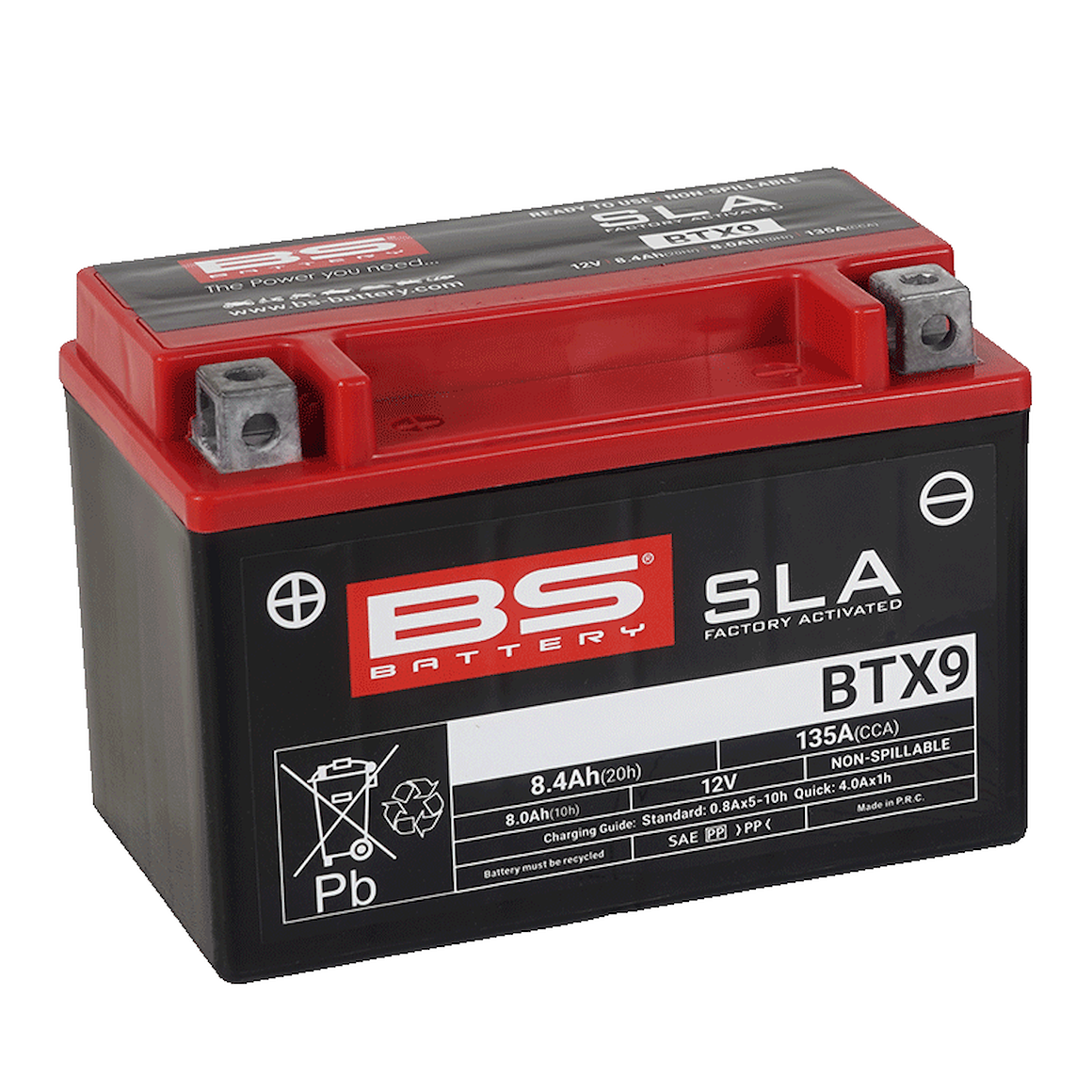 BS ATV Batteri BTX9 SLA 12V (YTX9-BS) er et høykvalitets og rimelig batteri for ATV og UTV, som er fylt, ferdigladet og klart for montering.