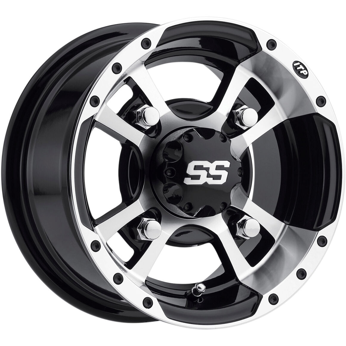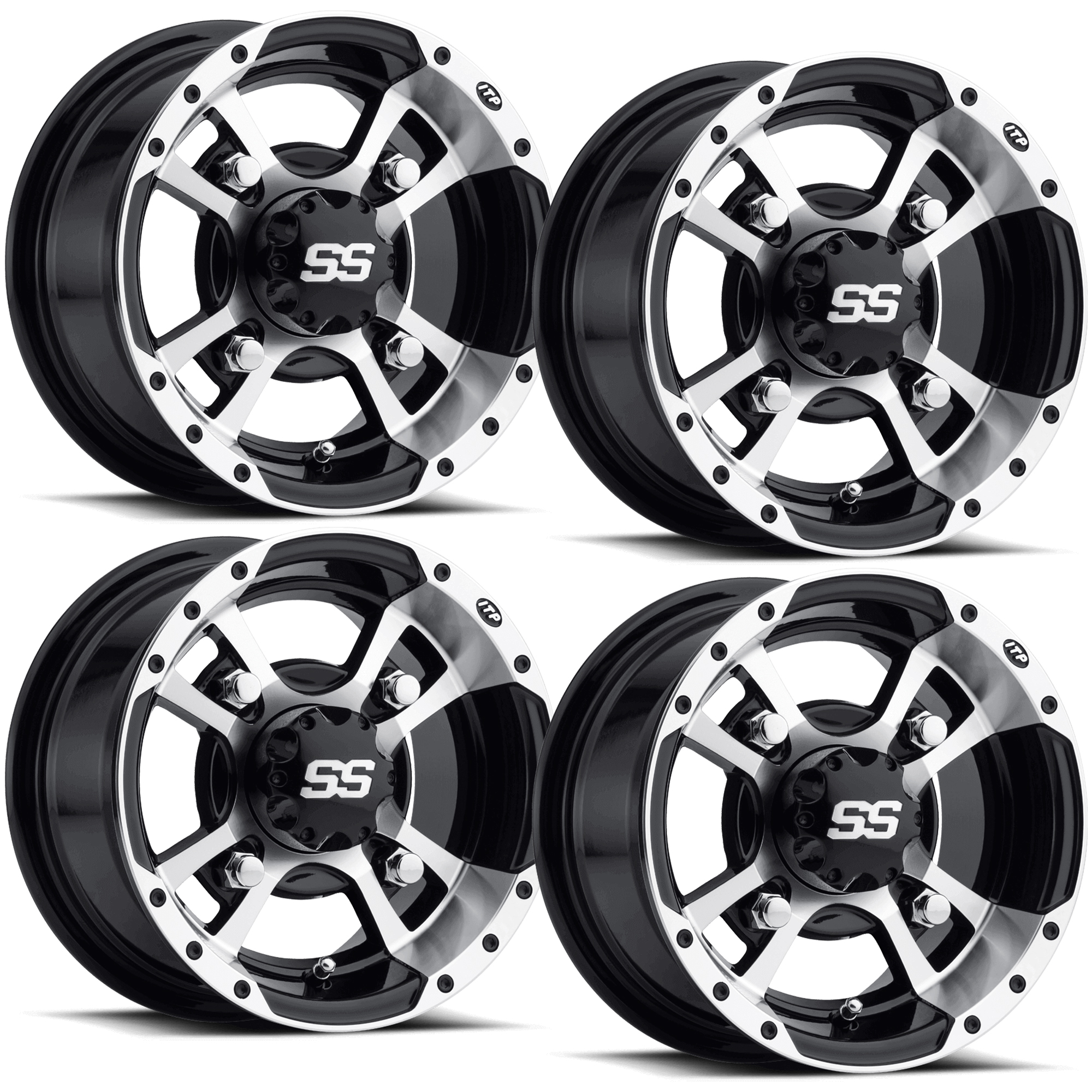 Komplett felgsett som inneholder 4 stk 10 tommers ITP SS112 aluminiumsfelger til din Quad