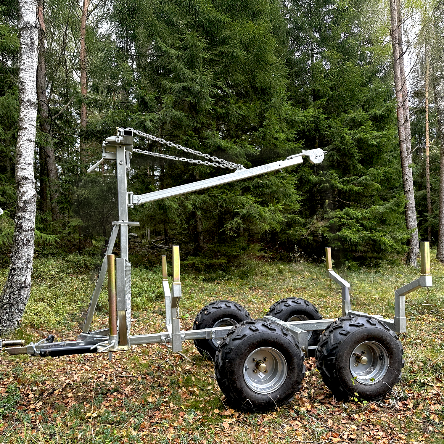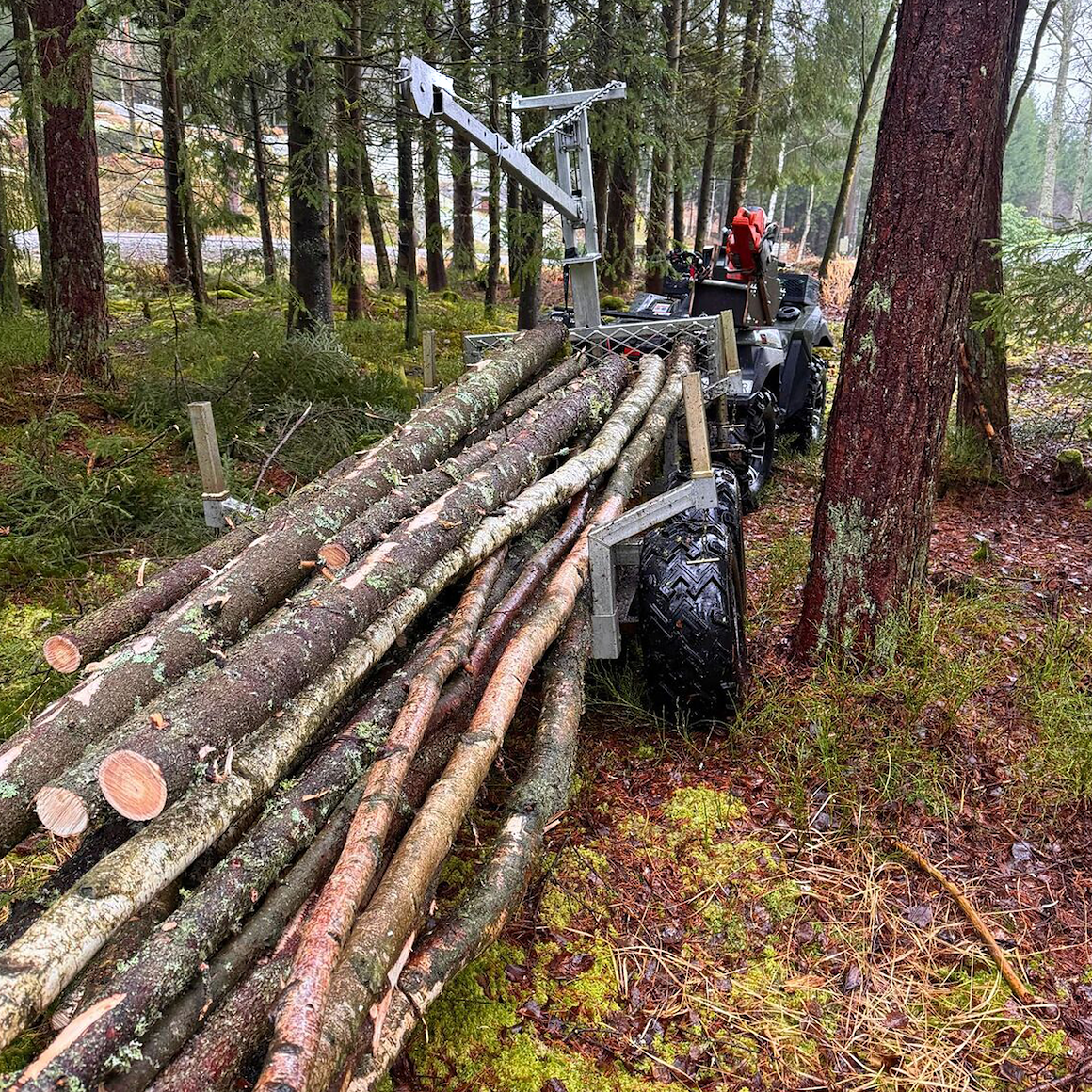 Tømmervogn for deg som jobber med ATV i skogen – slipp å slepe stokker for hånd og få jobbet gjort både raskere og sikrere.