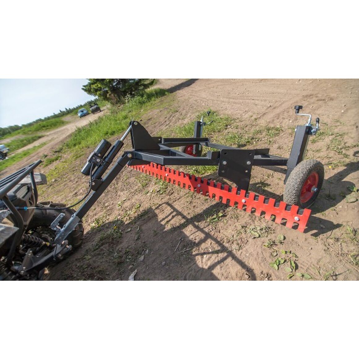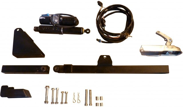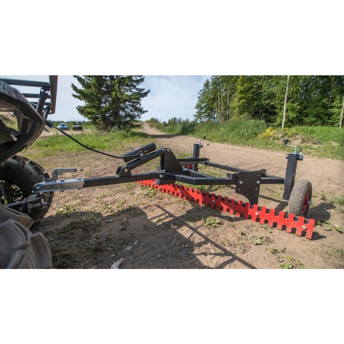 Komplett sett for å kunne justere skrapehøyden og trykket på din ATV veiskrape. Inneholder ny leddet trekkstang samt et elhydraulisk kraftpakke slik at du fra førerplassen kan stille høyden på veiskrapen.
