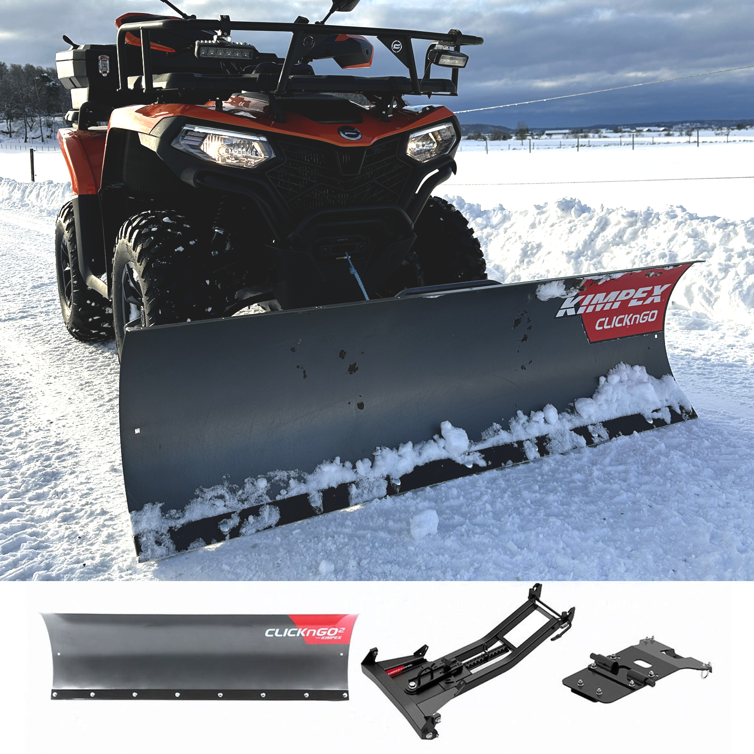 Kimpex Click n Go LT er en helt ny ATV-plog på markedet. Plogen baserer seg på det populære Click n Go 2-plogbladet men har en kortere plogarm med feste for montering i fronten på din ATV.