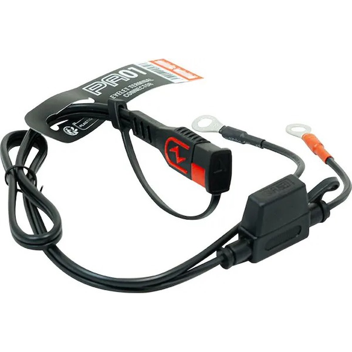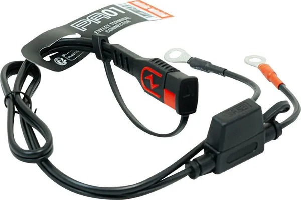 Ideell løsning for batterier som er vanskelig å komme til, skjult eller der klemmer ikke kan brukes. Koble ringterminalene til batteriet og lad som vanlig. Passer alle 12V kjøretøy og motorsykler samt ladere med SAE-plugg.