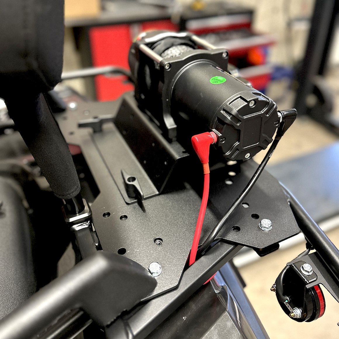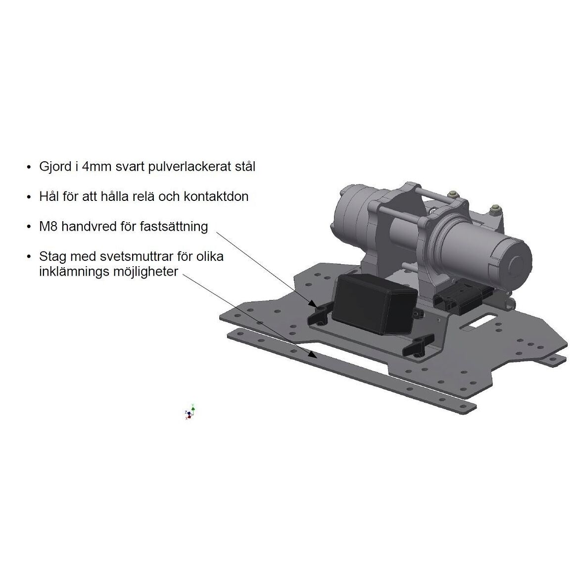 På bildene er vinsjfestet montert på en Goes Terrox 500. For montering av passasjergrep kan det være nødvendig å bore opp hullene i vinsjplaten og skaffe lengre bolter.
